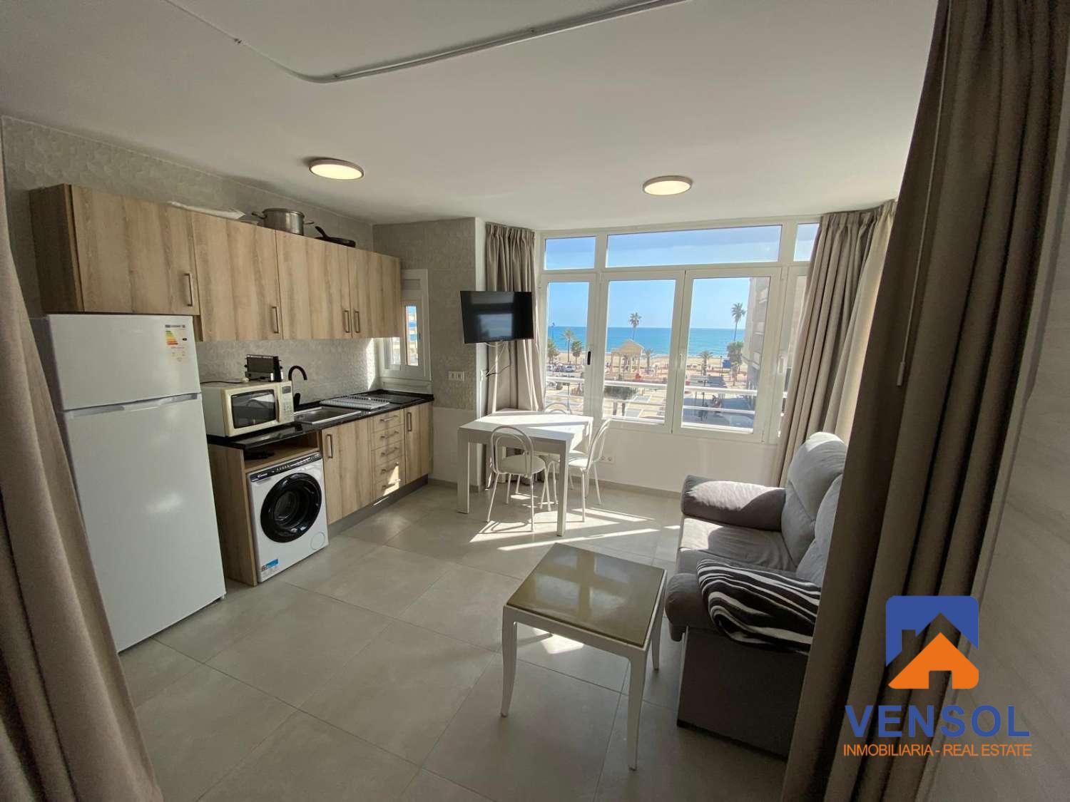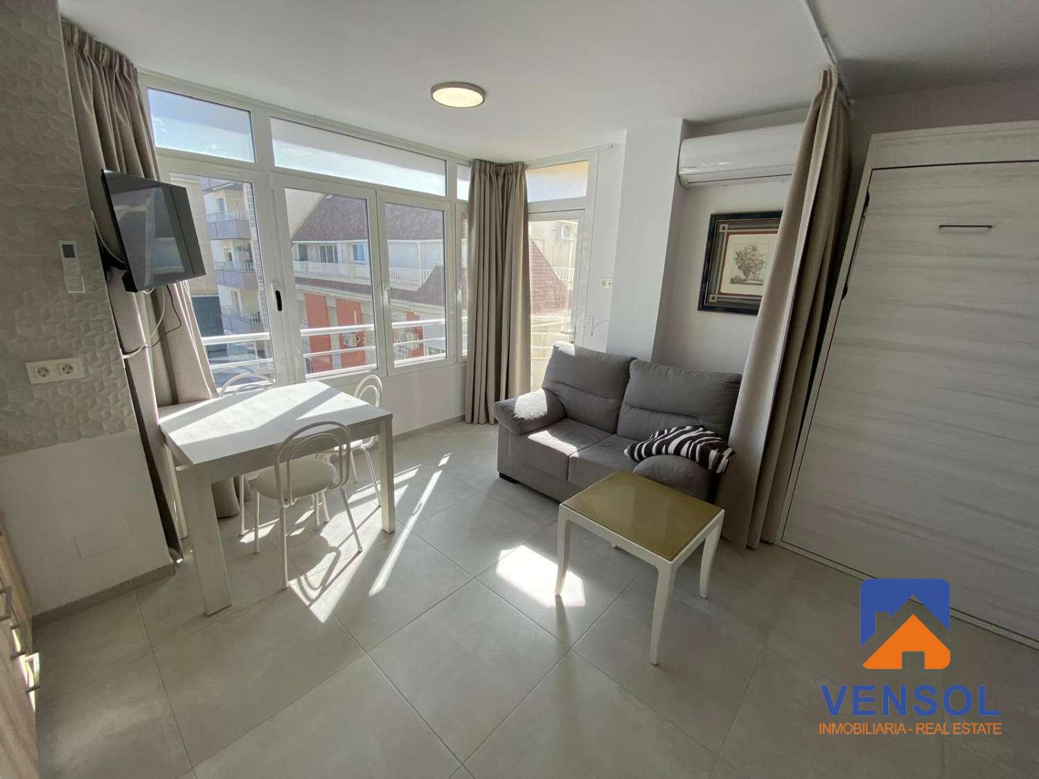 INMOBILIARIA VENSOL alquila estudio para LARGA TEMPORADA ubicado a un paso de la playa y con todos los servicios a mano, transporte, supermercados, restaurantes, etc. Se encuentra totalmente reformado a estrenar y cuenta con excelentes vistas al mar. Se requiere solvencia económica demostrable.